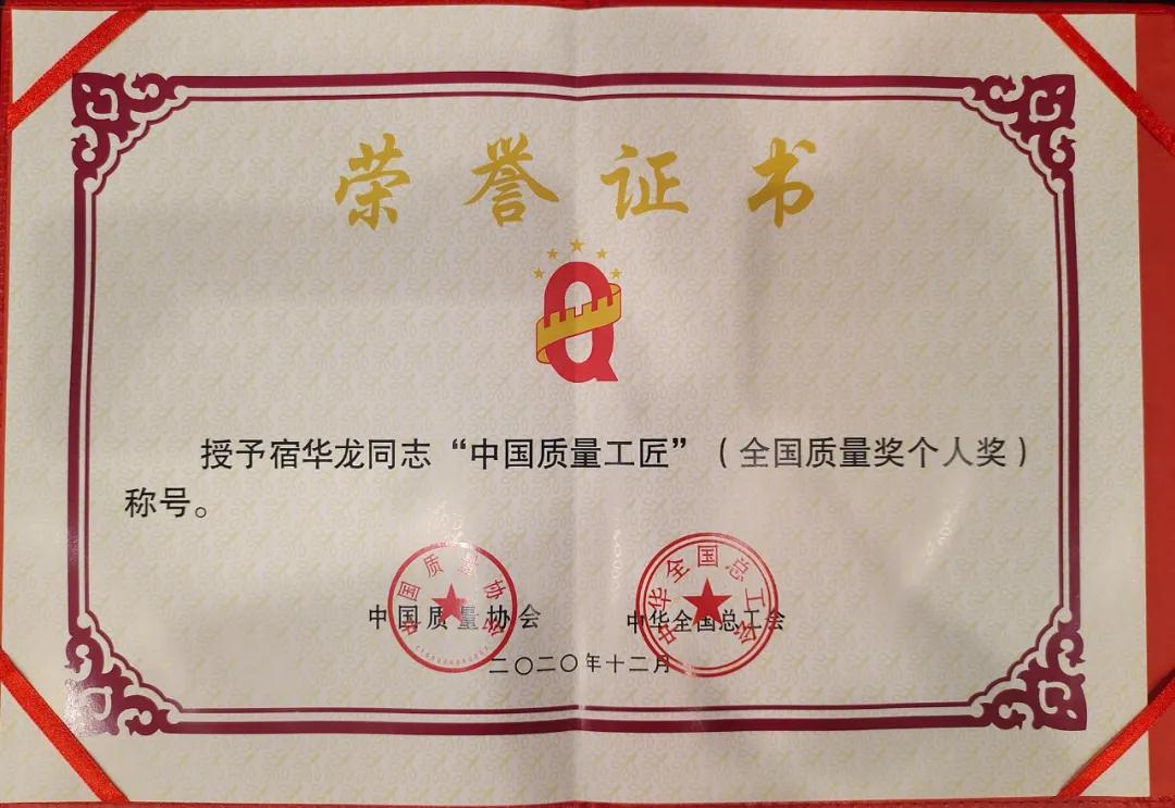 兵器工業集團宿華龍榮獲第十九屆全國質量獎“中國質量工匠”稱號 |